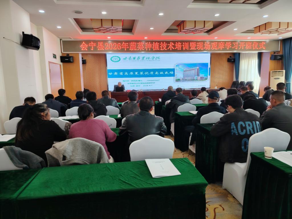 在“会宁县2026年蔬菜种植技术培训班”上,陶兴林围绕《甘肃省高原夏菜优质高效栽培》进行专题授课。他结合甘肃寒旱气候特点与当地生产实际,系统讲解了高原夏菜品种选择、茬口安排及提质增效关键技术。培训内容实用、针对性强,吸引80余名农技人员、合作社代表和种植大户参加。学员们认真听讲、积极交流,现场学习氛围浓厚。